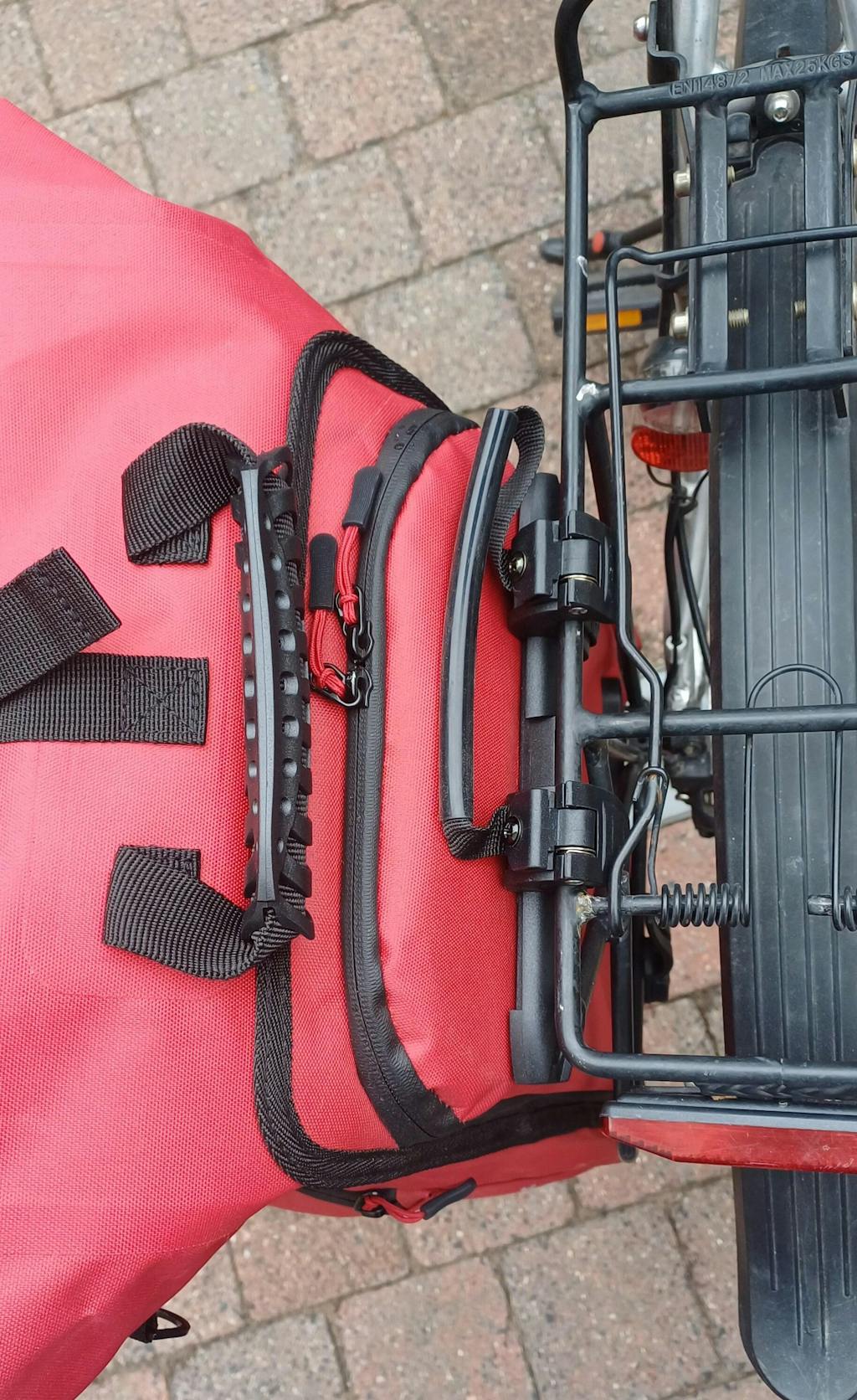 - Sitzt mit einem Klick sicher am Gepäckträger.